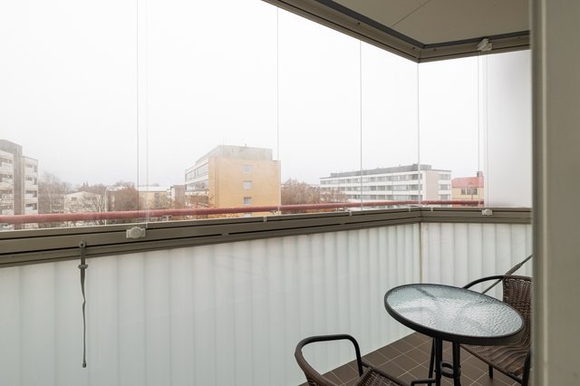 Denna lägenhet på femte våningen, med en yta på 57 kvadratmeter, erbjuder trevlig stadsutsikt från den västvända balkongen. Lägenhetens goda skick och välplanerade planlösning gör den till ett idealiskt hem för både par och ensamboende.