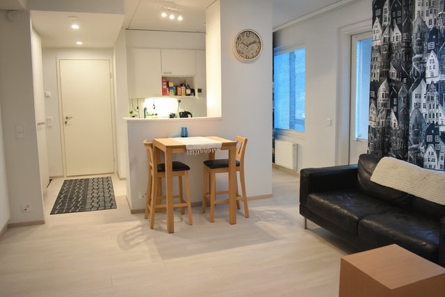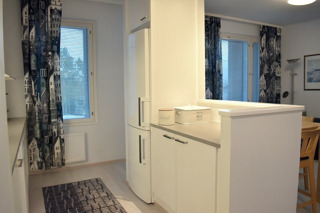 Asunnossa on avokeittiö, joka on varusteltu nykyaikaisilla kodinkoneilla, kuten erillisellä uunilla ja astianpesukoneella. Laminaattilattiat luovat yhtenäisen ilmeen olohuoneeseen ja makuuhuoneeseen. Kylpyhuoneessa on lattialämmitys ja sauna tarjoaa rentouttavia hetkiä arjen keskellä. Lasitettu parveke lisää asumismukavuutta ja tarjoaa viihtyisän tilan ympäri vuoden.