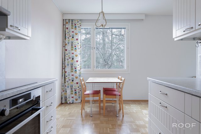 Sijainti on erinomainen, sillä lähellä on Pohjois-Tapiolan koulu ja päiväkoti, mikä tekee tästä asunnosta ihanteellisen perheille. S-Market on vain 400 metrin päässä, ja hyvät bussiyhteydet takaavat helpon liikkumisen.