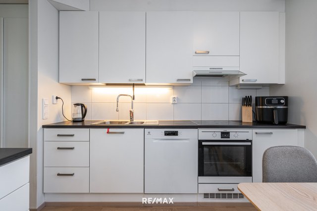 - Jääkaappipakastin, astianpesukone (Hankittu 2023), liesi, erillisuuni, ja liesituuletin