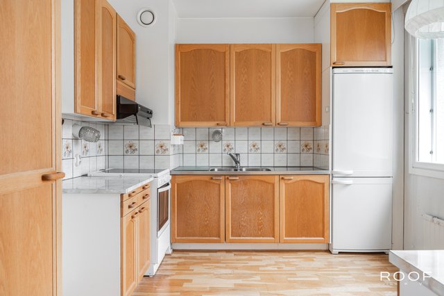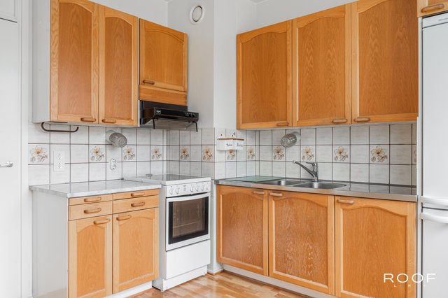 Kodin märkätilat on uusittu 2012–2013 putkiremontin yhteydessä, joten kylpyhuone ja wc ovat nykyaikaisessa kunnossa. Muilta osin asunto kaipaa pintaremonttia, mikä antaa erinomaisen mahdollisuuden toteuttaa juuri oman näköisen kodin. Huoneet ovat valoisia ja tilavia, ja asunnon toimiva pohja tekee arjesta sujuvaa.