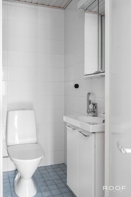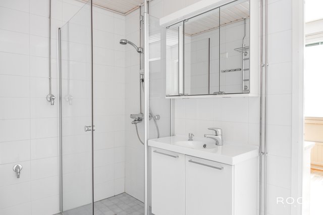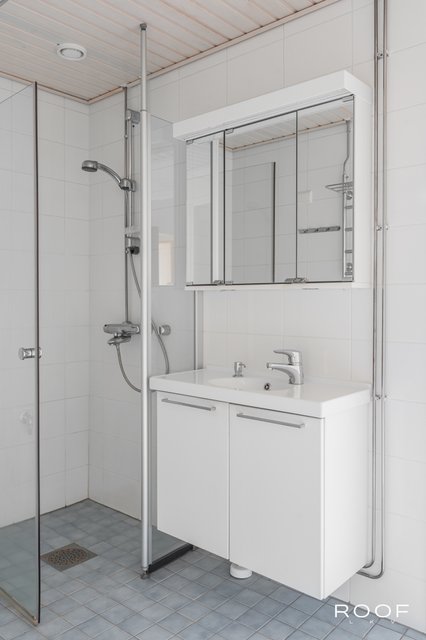 - Suihku, pesukoneliitäntä, peilikaappi, allaskaappi, pyyhekuivain, ja suihkuseinä