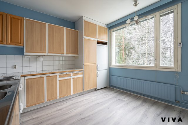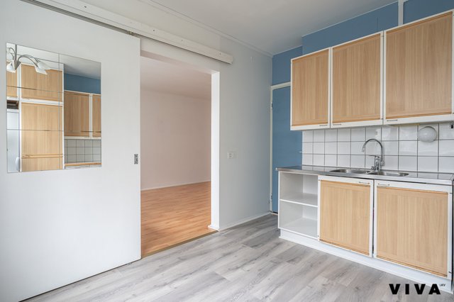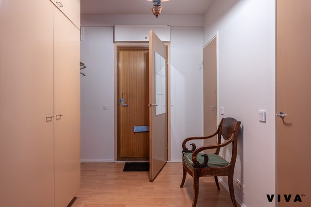 Tässä valoisassa ja toimivapohjaisessa kodissa on kaksi tilavaa makuuhuonetta, viihtyisä olohuone sekä suuri, runsaasti kaappitilaa tarjoava keittiö, jossa on hyvin tilaa myös ruokapöydälle.