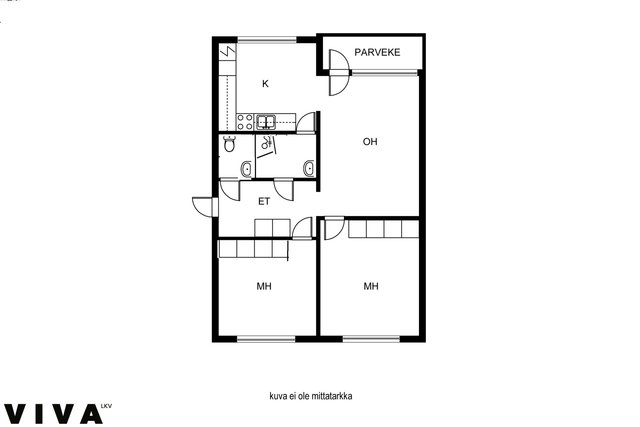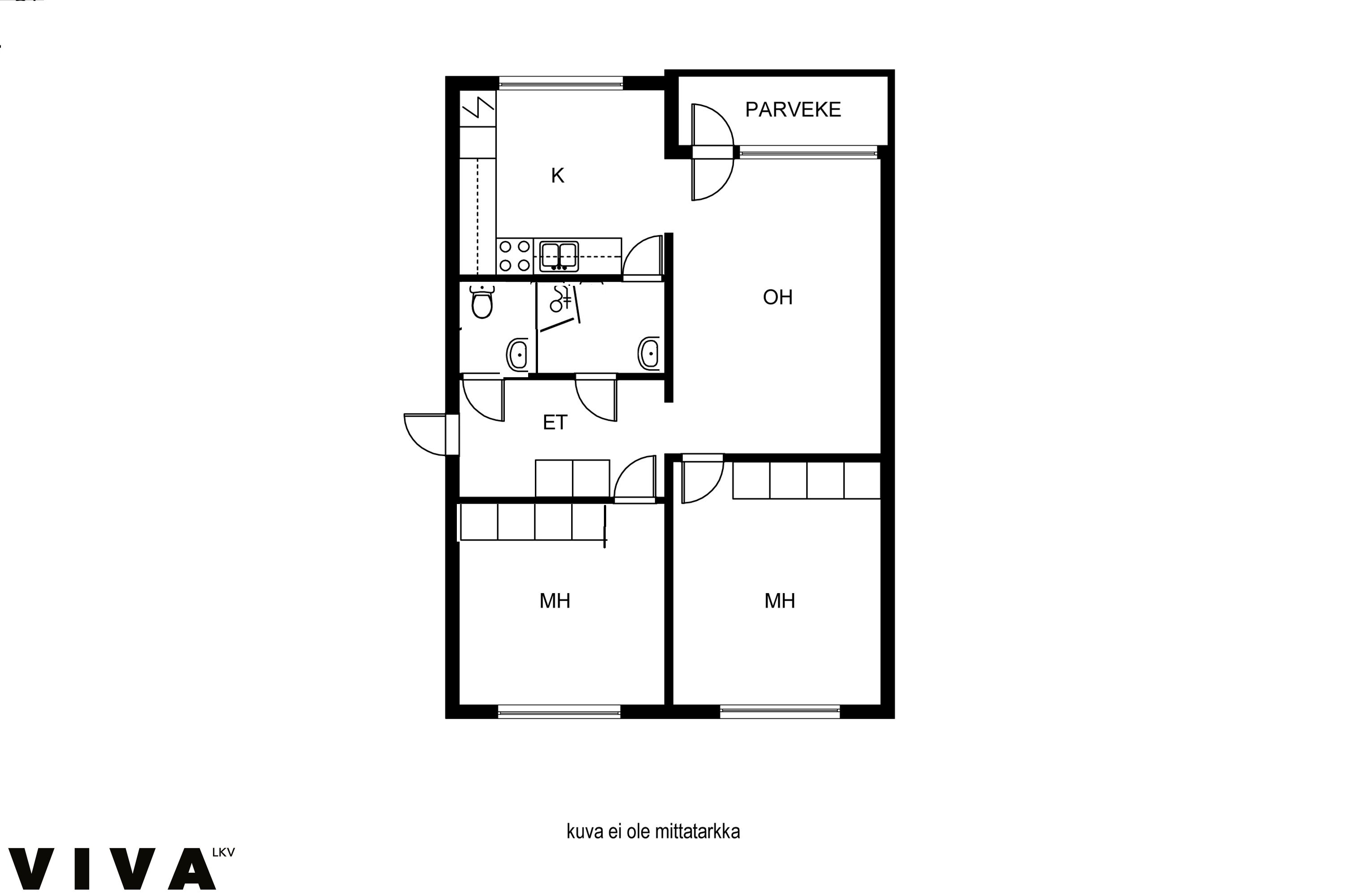 - Ei tarkistusmitattu. Pinta-alat saattavat tämän ikäisissä kohteissa (yhtiö rekisteröity ennen 01.01.1992) poiketa olennaisestikin asuinrakennusten nykyisten mittaustapojen ja standardien (SFS 5139) mukaan laskettavasta asuintilojen pinta-alasta. Pinta-ala voi siis olla edellä mainittua pienempi tai suurempi.