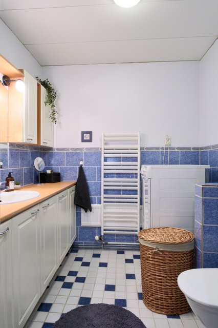 - Tilavaan pesuhuoneeseen on sijoitettu kaksi suihkua. Pesuhuone on kauttaaltaan laatoitettu vuonna 2003 ja samassa yhteydessä ilmanvaihtoa on parannettu laittamalla näihin tiloihin koneellinen tulo- ja poistoilma kanavapuhaltimilla.