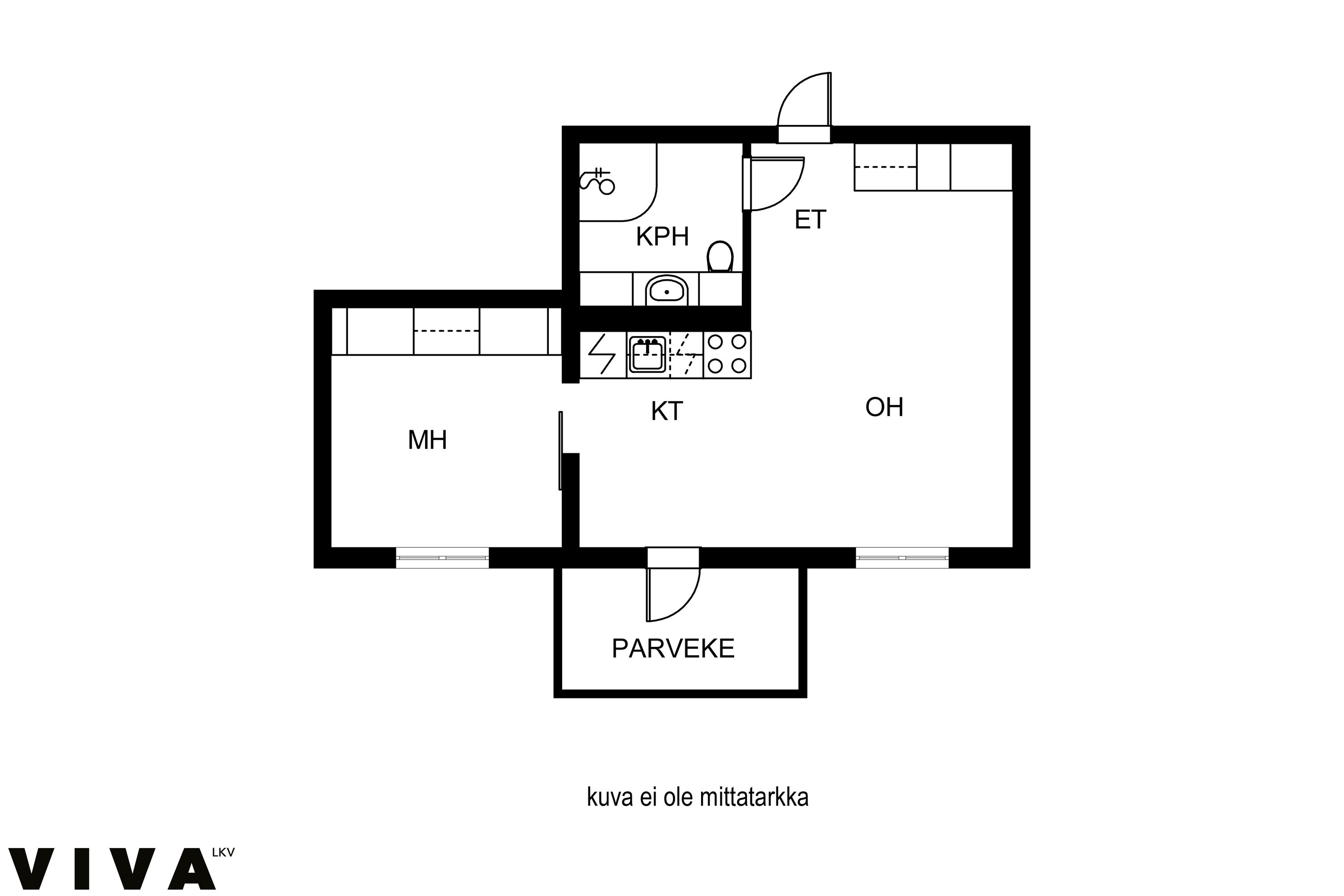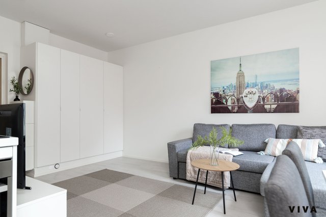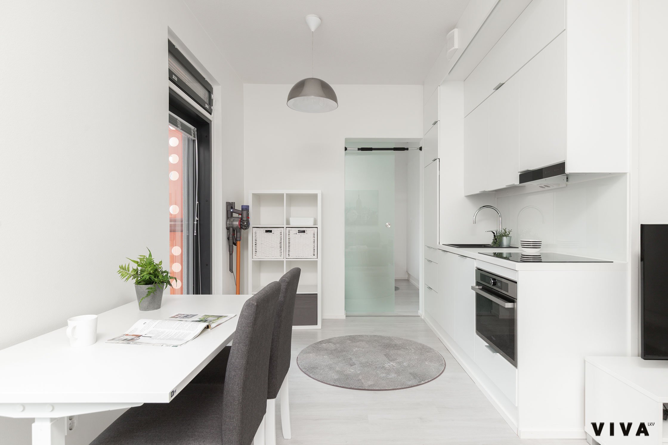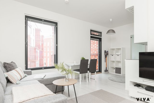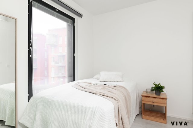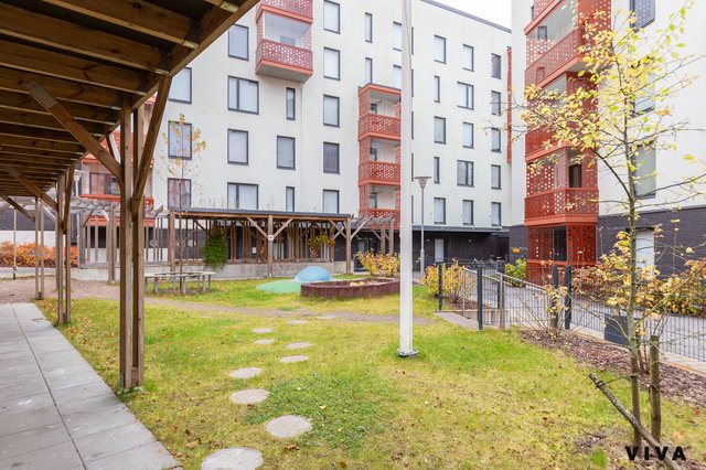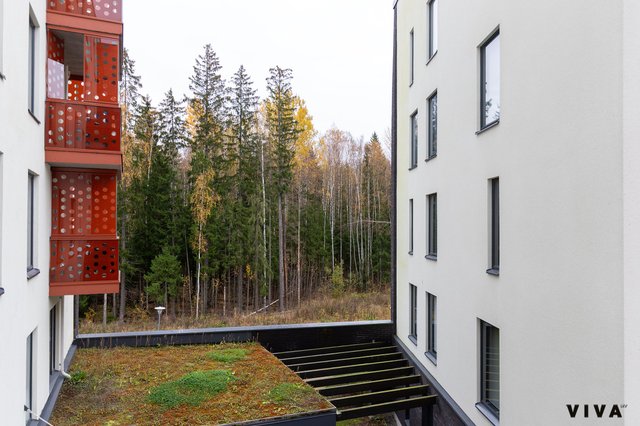 Asunnon tilava ja valoisa parveke avautuu sisäpihalle etelän suuntaan. Moderni keittiö on varustettu induktioliedellä ja muilla nykyaikaisilla kodinkoneilla. Tilavassa kylpyhuoneessa on lattialämmitys ja pesukoneliitäntä.