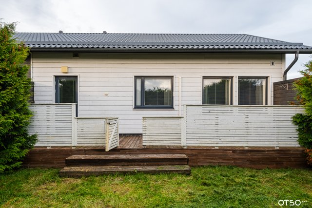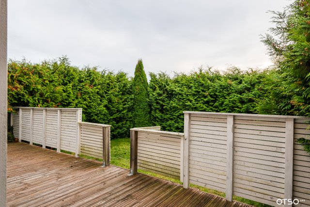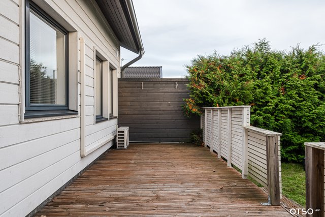 Takapiha on kyllä niin suojainen, että eipä haittaa viereinen tiekään yhtään. Terassi kaipailee uusimista, mutta sitten saatkin ihan sellaisen terassin kuin haluat.