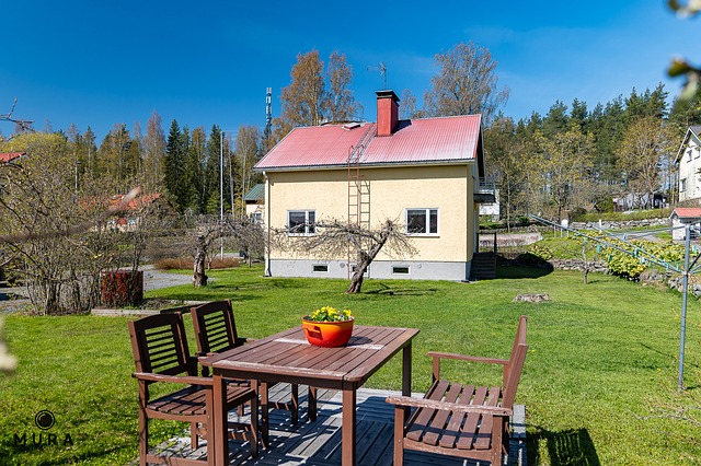 Reilun kokoinen, oma aurinkoinen puutarhatontti.