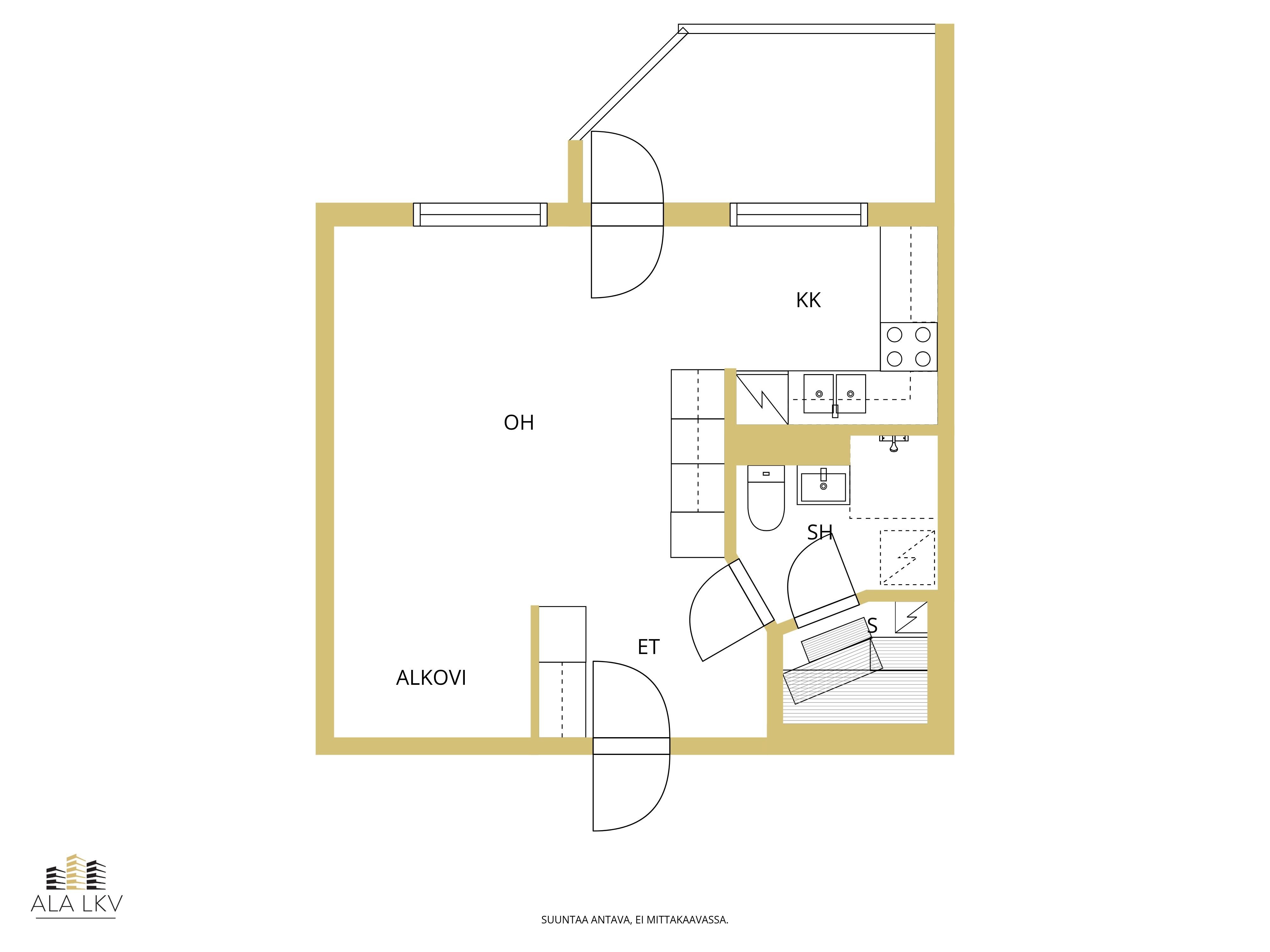 - Yhtiöjärjestyksen mukainen, (Pinta-ala ei ole tarkistusmitattu ja todellinen pinta-ala voi olla suurempi tai pienempi, kuin ilmoitettu)