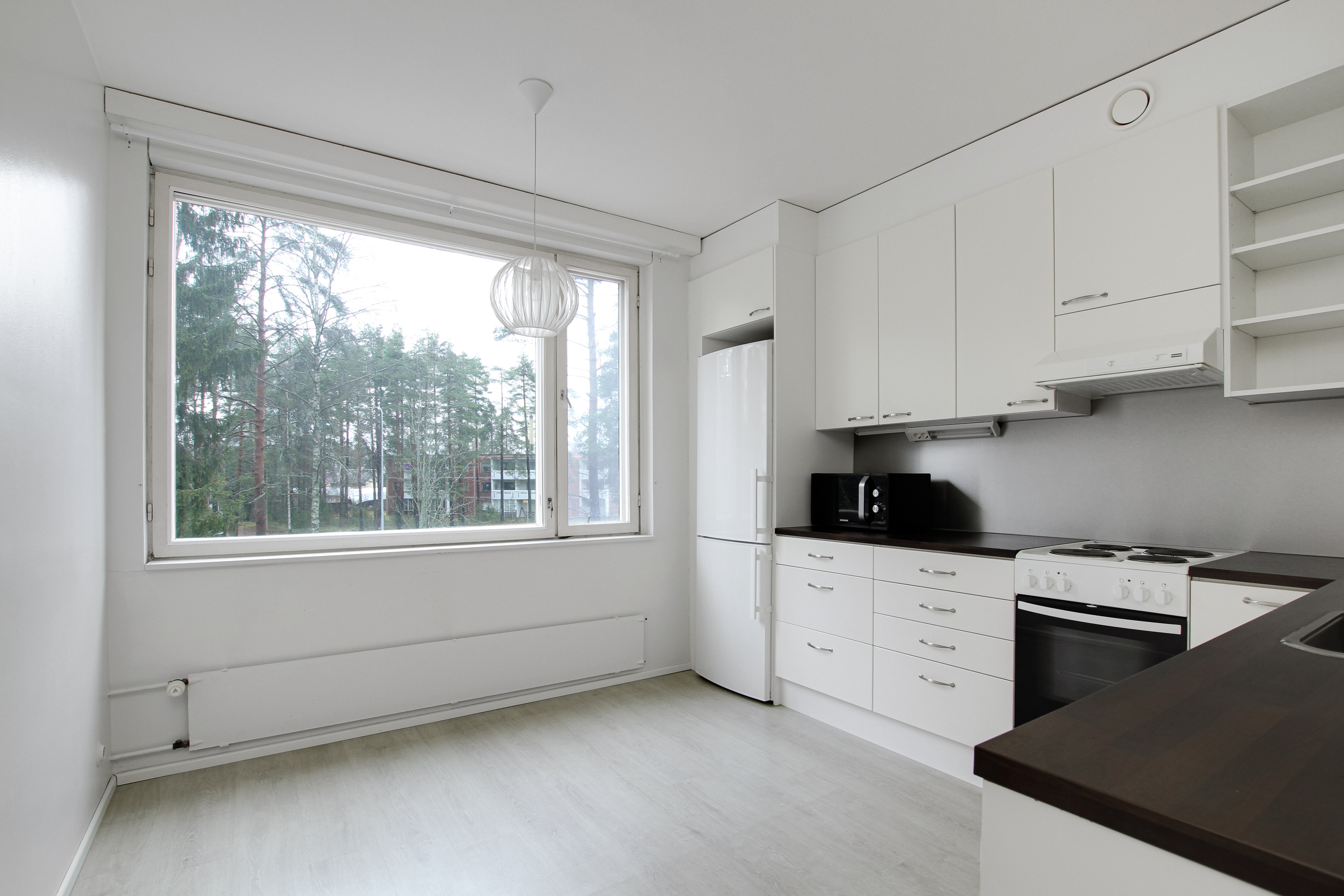 Asunnossa on laminaattilattiat ja seinät on tapetoitu, mikä luo kodikkaan tunnelman. Keittiö on varusteltu nykyaikaisesti jääkaapilla, liedellä, uunilla ja astianpesukoneella. Kylpyhuoneessa on kaikki tarpeellinen, kuten suihku ja pesukoneliitäntä. Asunnon parveke on lasitettu, mikä lisää viihtyisyyttä ympäri vuoden.