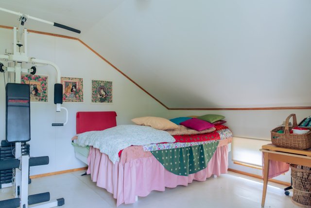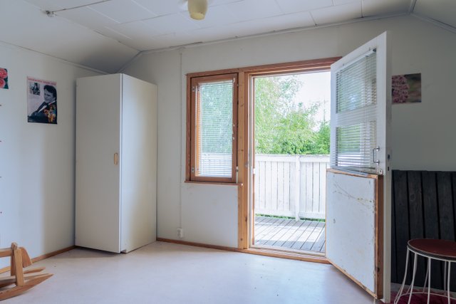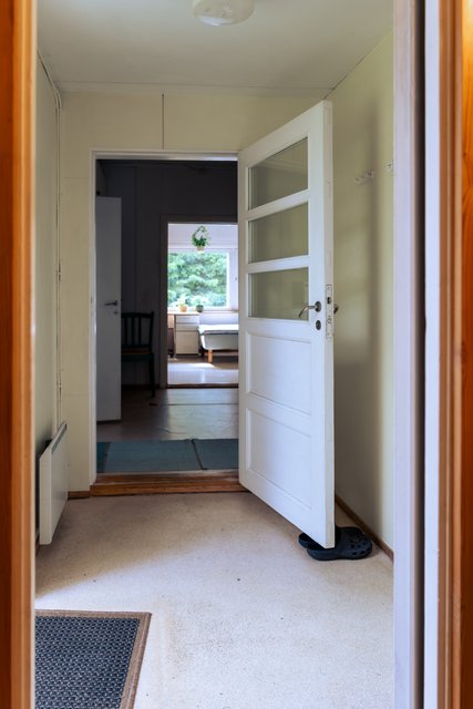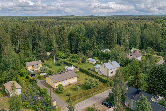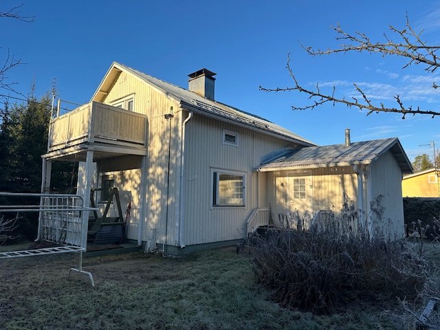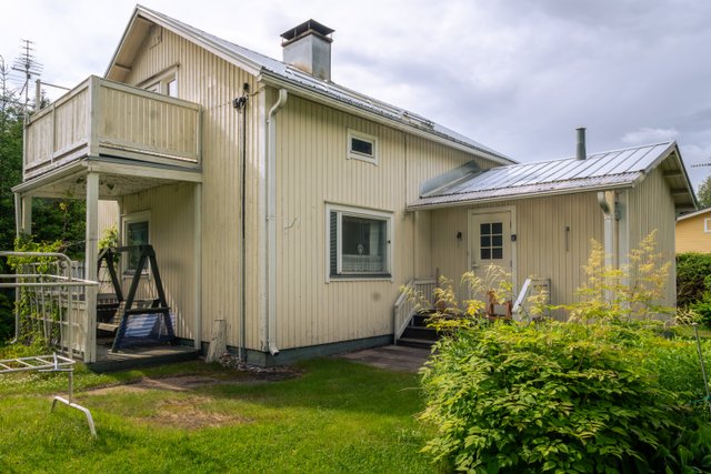 Kaksikerroksinen talo on laajennettu 1981 ja se sisältää kolme makuuhuonetta, jotka sopivat hyvin perheen tarpeisiin tai vierastiloiksi. Olohuoneessa on lämmin tunnelma ja kauniit puulattiat, ja erillinen keittiö palvelee arkea toimivasti. Alakerrassa sijaitsevat kylpyhuone, wc ja saunatilat.