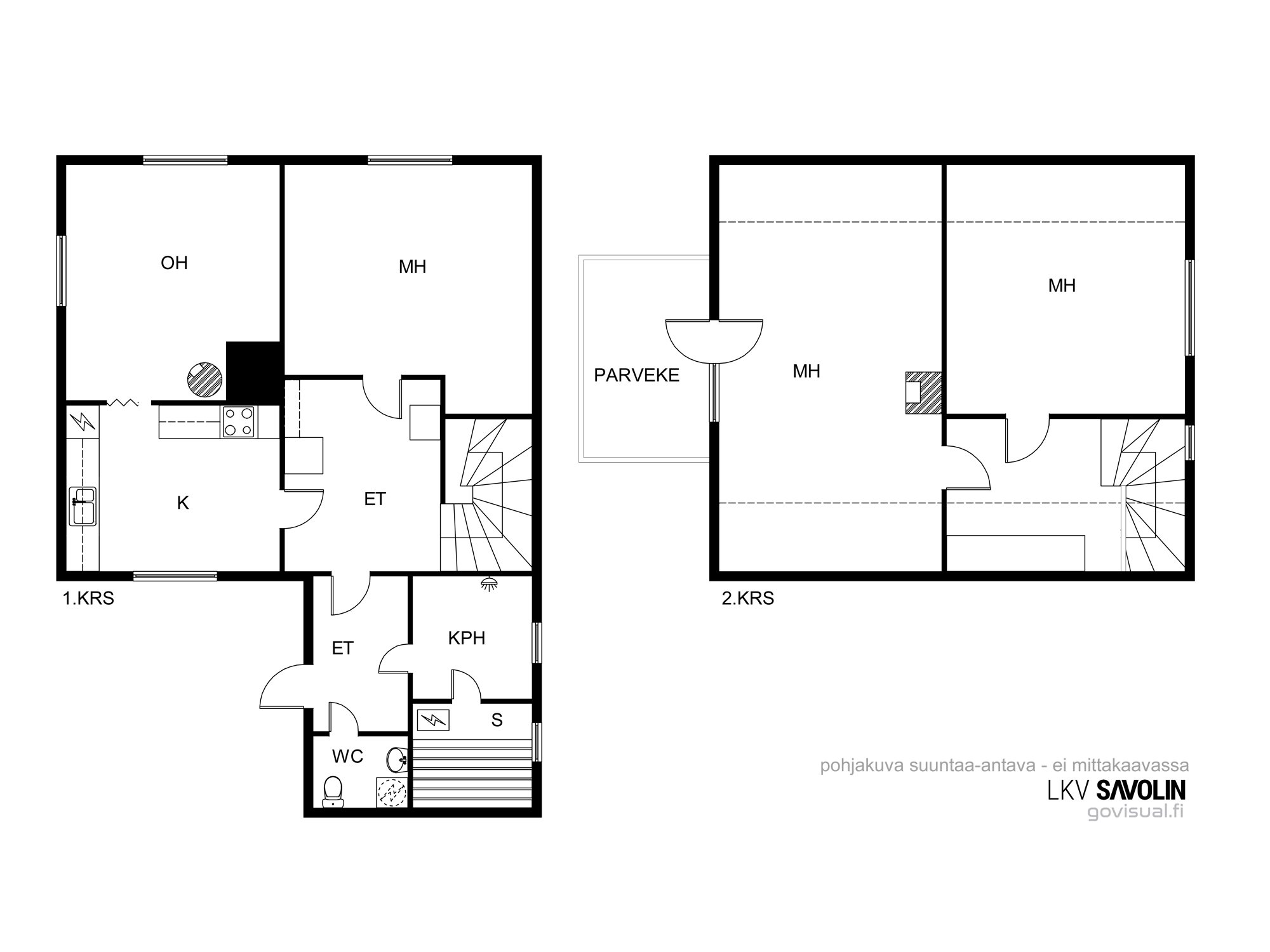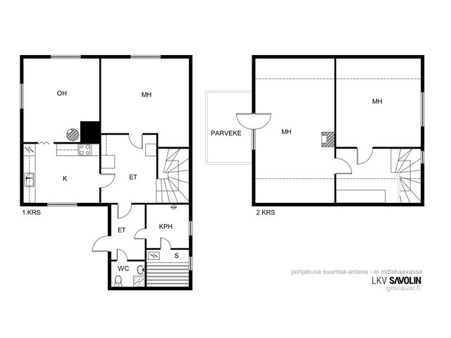 - Pinta-alatiedot on saatu käyttämällä talon ulkomittoja (8,5mx7m, laajennusosa 4mx4m) sekä kerrointa 0,85.