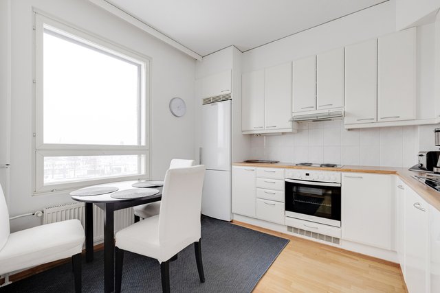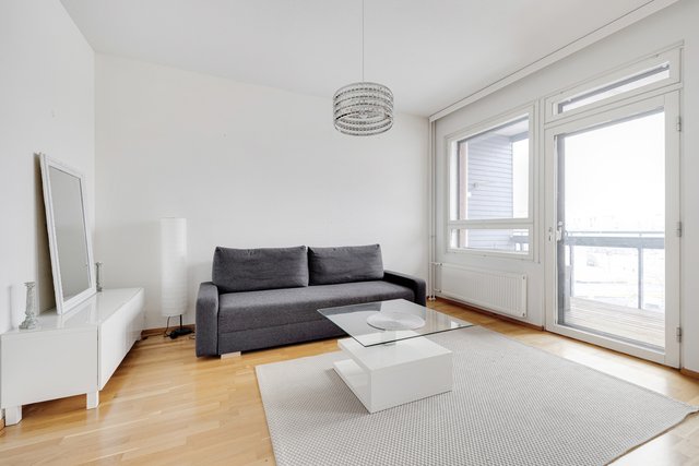 Asunnon olohuone ja keittiö muodostavat avaran kokonaisuuden, jossa on helppo viihtyä. Keittiö on varusteltu nykyaikaisilla laitteilla, ja oma sauna tuo lisämukavuutta arkeen. Lasitettu parveke länsilounaaseen avautuvine näkymineen on täydellinen paikka nauttia ilta-auringosta.