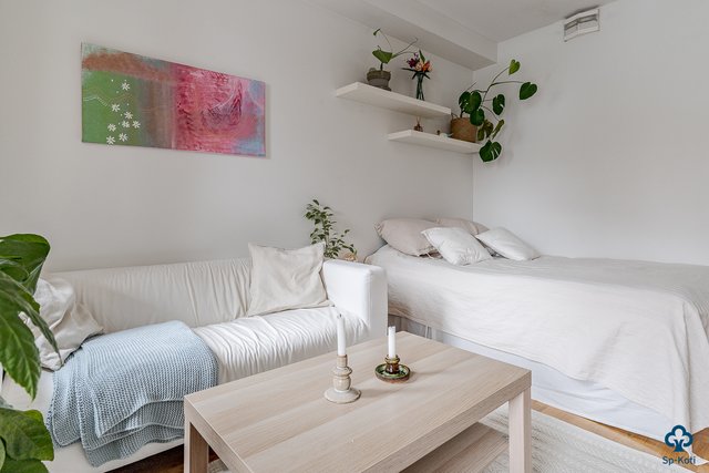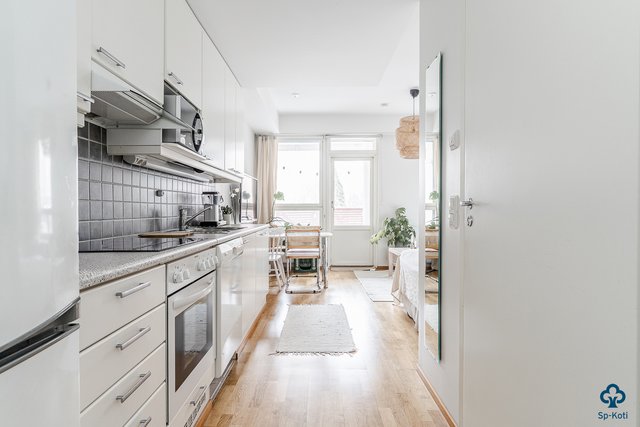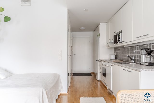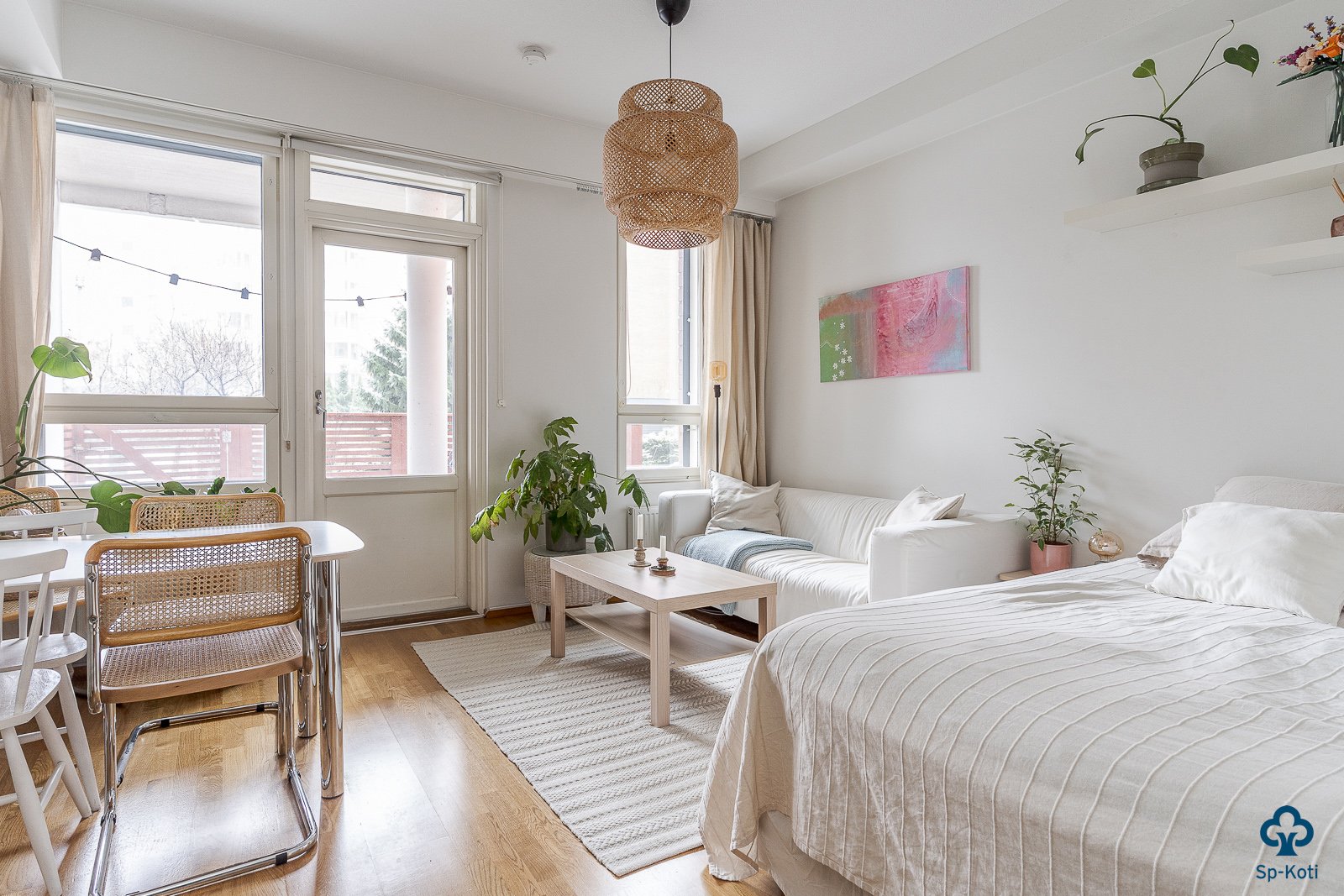 Kompakti koti, joka erottuu edukseen. Tässä 30 neliön kodissa on herkkuina oma sauna ja kivan kokoinen patio. Patio on aidattu ja se on rauhallisen sisäpihan suuntaan. Parvekkeilla ja patioilla on tupakointikielto.