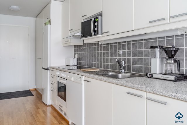 - Keraaminen liesi, liesituuletin, astianpesukone, jääkaappipakastin. Laminaattilattia, seinät maalattu.