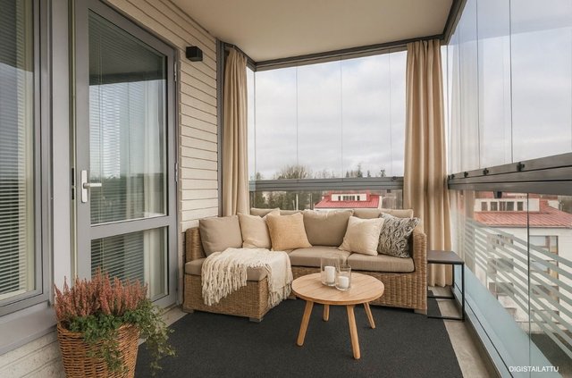 Tämä upea muuttovalmis kaksio on valmistettu laadukkaista materiaaleista. Asunnon erityinen valtti on suuri lasitettu parveke, joka toimii lisä-huoneena lähes ympäri vuoden. Avarassa olohuone-keittiössä on paljon luonnonvaloa, modernit kodinkoneet ja vaaleat pinnat. Makuuhuone tarjoaa hyvät säilytystilat ja rauhalliset puitteet arkeen.