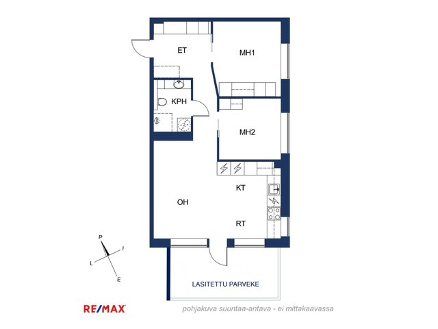 - Asuinpinta-ala 59 m2 Lasitettu parveke noin 12 m2