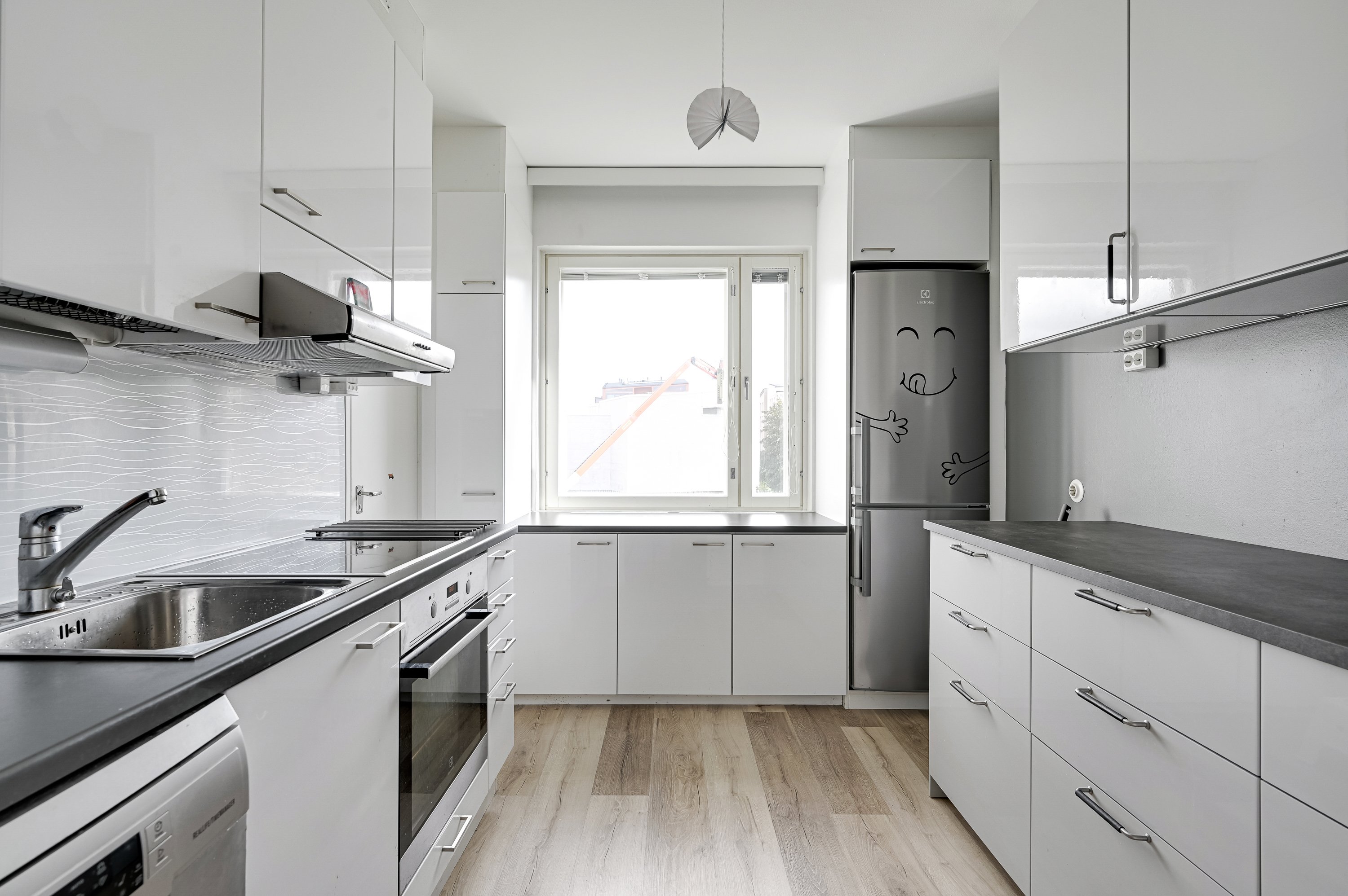 - Jääkaappipakastin, liesi, liesituuletin, ja astianpesukone