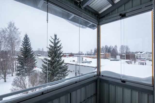Ylimmän kerroksen iso kulmahuoneisto loistosijainnilla keskustassa, kaikki palvelut ovat kävelymatkan etäisyydellä. Tämän kodin sydän on hulppean iso olohuone, jossa takka luo tunnelmaa tilaan. 2018 remontoidussa keittiössä on runsaasti kaappitilaa. Viehättävä ruokailutila yhdistyy kivasti olohuoneeseen.