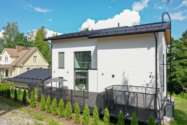 Vuonna 2022 valmistunut, moderni ja valoisa kivitalo tarjoaa 175 neliötä tyylikästä ja energiatehokasta asumista. Tämä kaksikerroksinen koti on suunniteltu vastaamaan vaativankin perheen tarpeita, tarjoten viisi huonetta, keittiön, ruokailutilan, walk-in closetin, kolme wc:tä sekä kodinhoitohuoneen, joka tekee arjesta sujuvaa. Upeat Spa-henkiset kylpyhuone- ja saunatilat, Grado Designin kelluvat valoportaat, tarkkaan harkitut valaistukset, akustiikka, korkea huonekorkeus ja jokaiseen suuntaan olevat suuret ikkunat tuovat rutkasti arvokkuutta ja luksusta asumiseen.