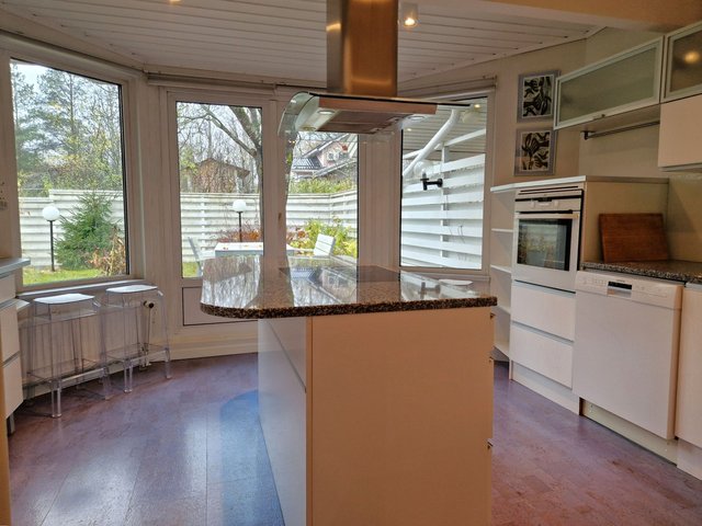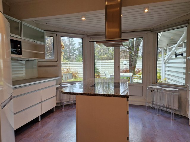 - Jääkaappipakastin (x2), keittiösaareke, liesituuletin, mikroaaltouuni, astianpesukone, ja erillisuuni