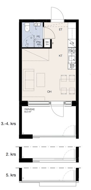 Tässä kodissa yhdistyvät toimiva pohjaratkaisu, nykyaikainen varustelu sekä miellyttävä asumisviihtyvyys. Tilava olohuone kutsuu rentoutumaan, ja suuret ikkunat tuovat runsaasti luonnonvaloa sisään. Keittiö on käytännöllinen ja tarjoaa hyvin kaappitilaa. Asunnossa on lisäksi oma lasitettu parveke, josta avautuvat vehreät näkymät.