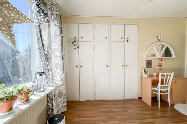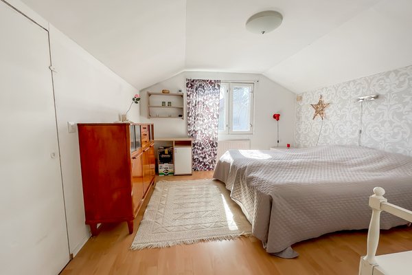 - Alakerroksessa kaksi makuuhuonetta. Yläkerrassa yksi makuuhuone ja tilaa rakentaa kaksi makuuhuonetta lisää