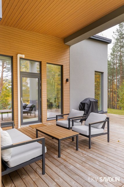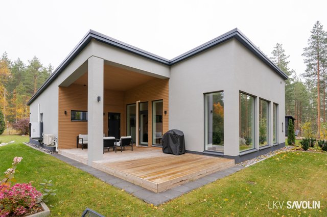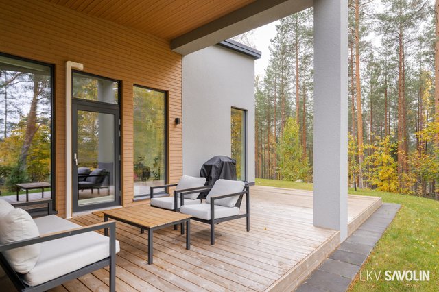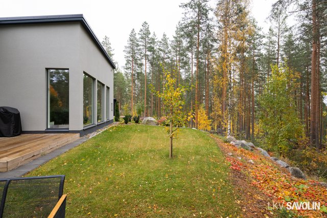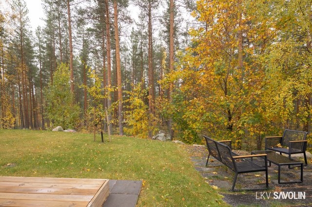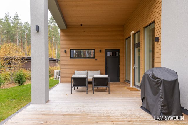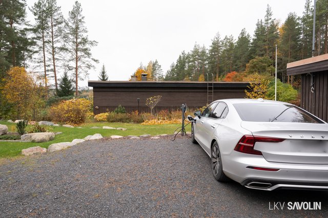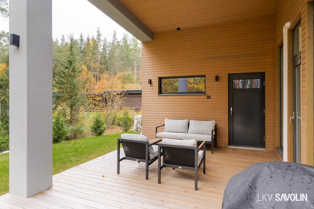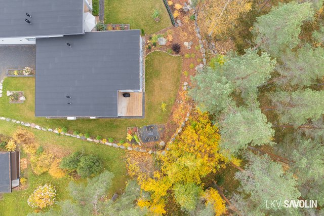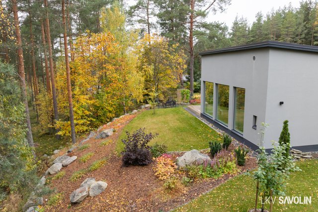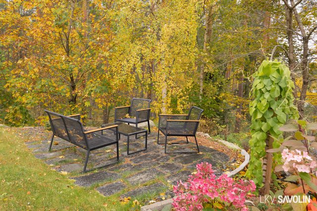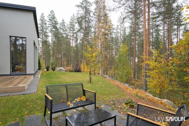 Pihalla on viihtyisä terassi, joka rajautuu rauhalliseen lähivirkistysalueeseen – metsäiset maisemat tuovat luonnon lähelle. Vehreä ja suojaisa tontti tarjoaa täydellisen paikan rentoutumiseen. Autopaikka sijaitsee katoksessa, ja pihalta löytyy sähköauton latausmahdollisuus.
