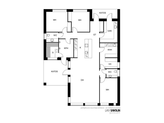 4 huonetta, keittiö, kph, sauna, 2x erill. wc, khh, vaatehuone, varasto