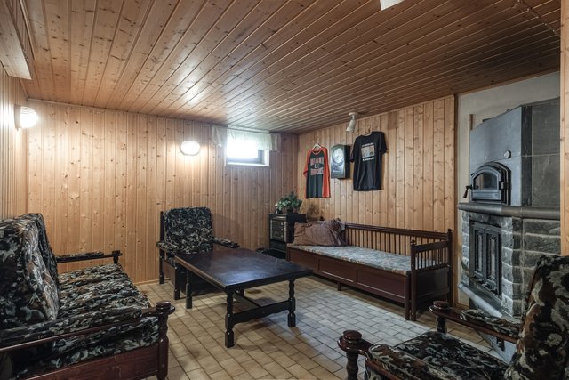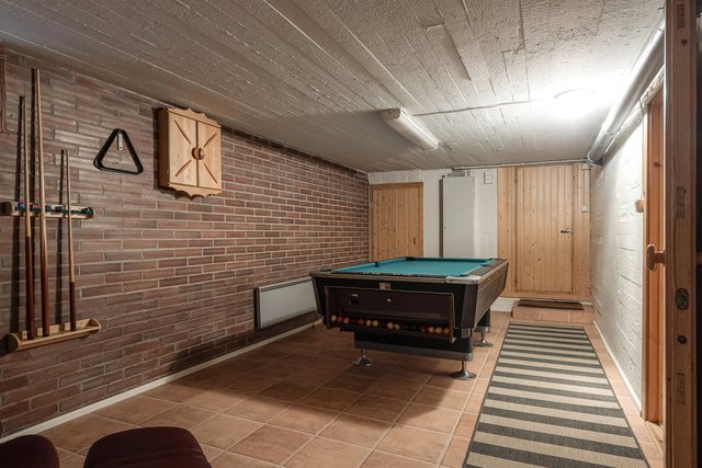 - Kellarikerroksessa takkahuone (Tulikiven leivinuuni/takka), sauna, kylpyhuone, pukuhuone, kellari- ja varastotiloja. Yläkerran huoneistossa uusittu varaava takka.