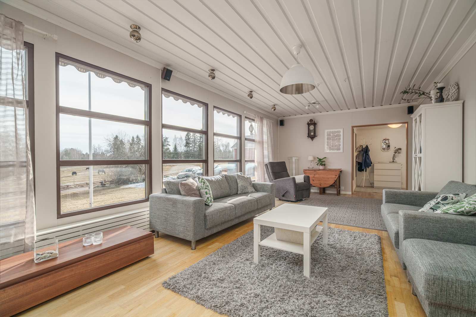 Valoisa ja hyväpohjainen neljän makuuhuoneen omakotitalo isolla 6700 m²:n tontilla. Tähän rinnetonttiin kuuluu sekä puutarha että isot hyvin hoidetut pellot.