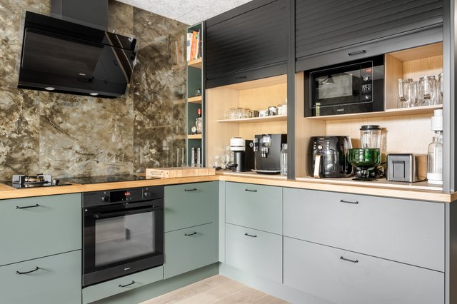 - Jääkaappi (2kpl), erillinen pakastin (2kpl), erillisuuni, liesi, liesituuletin, mikroaaltouuni, astianpesukone, ja puuhella