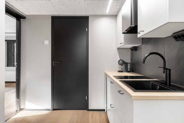 Jo ovella käy selväksi, että tämä koti on tehty erottumaan. Avoin ja valoisa pohjaratkaisu, laadukkaat materiaalit ja ajattomat pinnat luovat ylellisen tunnelman. Keittiössä yksisauvaiset massiivipuutasot ja suurlaatat tuovat näyttävyyttä. Olohuoneessa tunnelmaa täydentää tyylikäs takka. Kylpytilat ja kodinhoitohuone on viimeisteltyjä laadukkailla Belle Arti -pinnoitteilla ja Unidrain-lattiakaivoilla, ja talo tarjoaa tarvittaessa jopa neljä tilavaa makuuhuonetta, joten tilaa löytyy niin suurelle perheelle kuin vieraille.