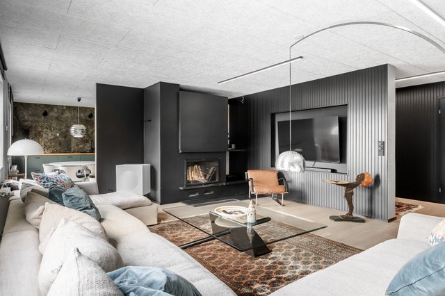 - Olohuoneessa takka.