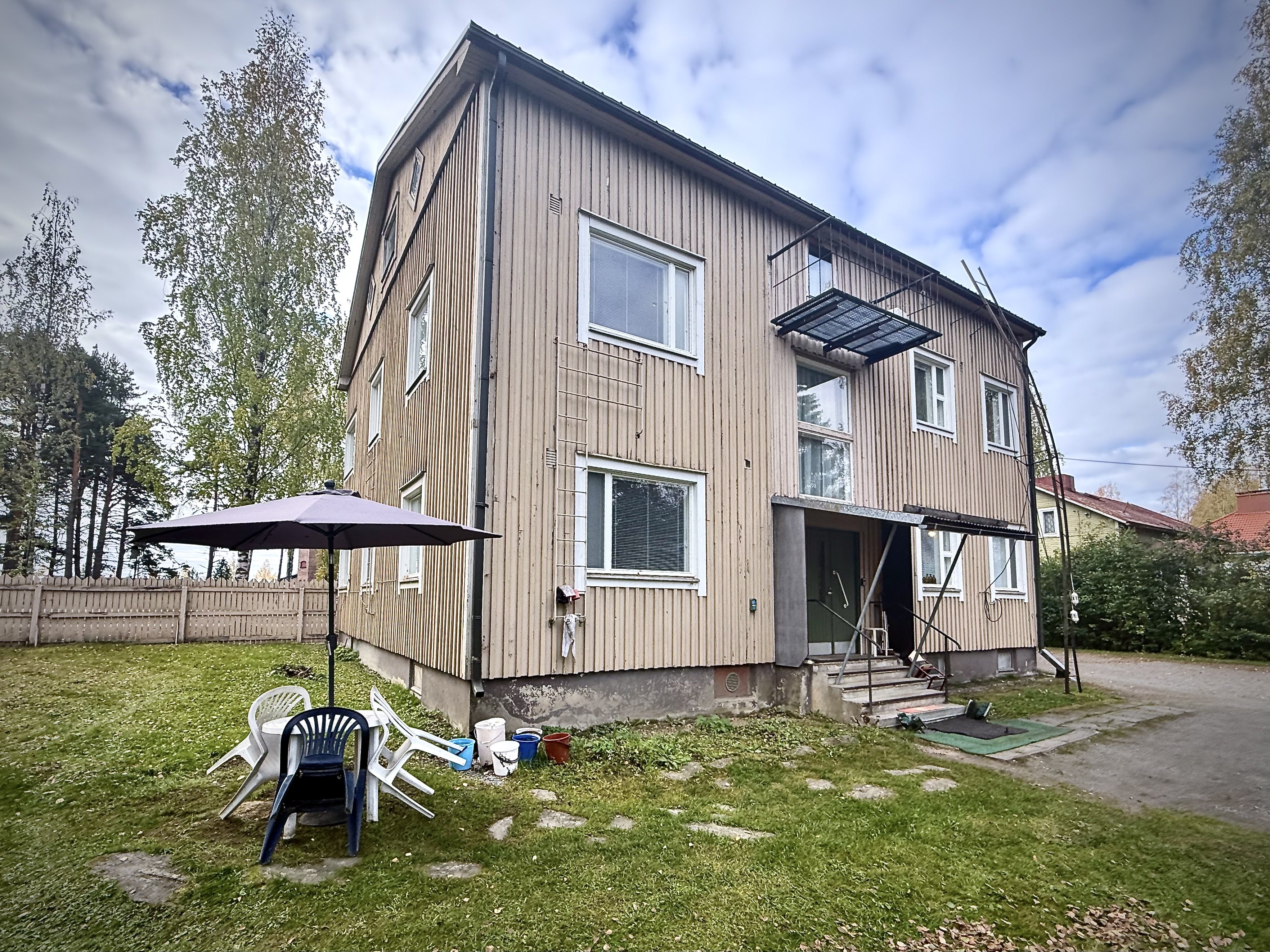Mahdollisuuksien puukerrostalo Nurmeksen keskustasta.