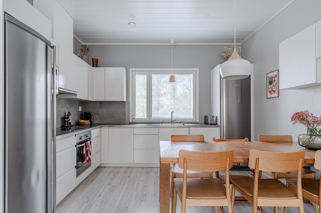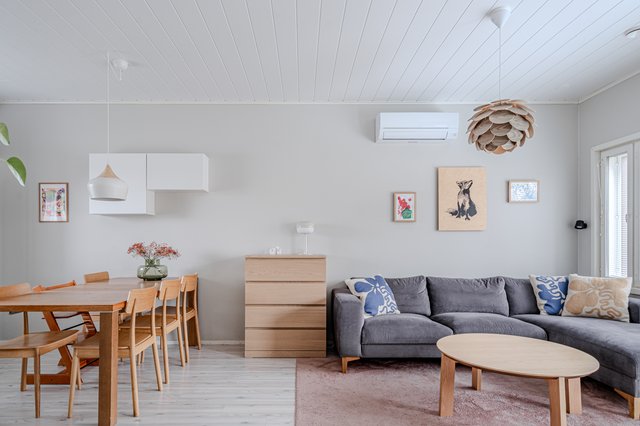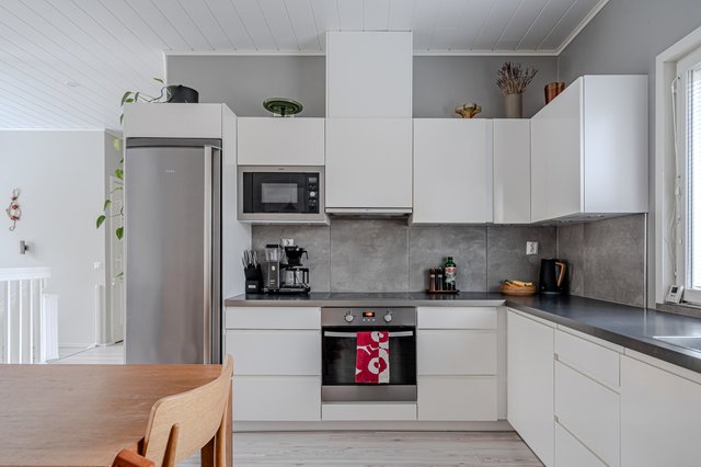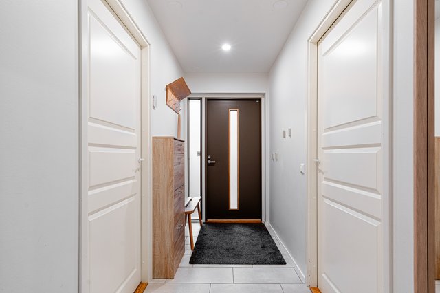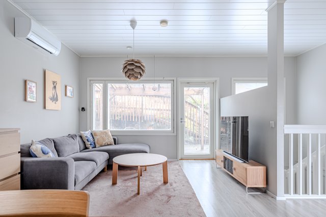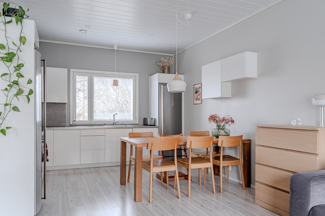 Completed in 2015, the housing company consists of a total of 8 apartments and is heated efficiently with an air-to-water heat pump, keeping living costs low. Mechanical ventilation with heat recovery and water-circulated underfloor heating add to the comfort.
