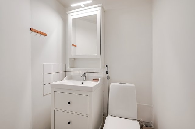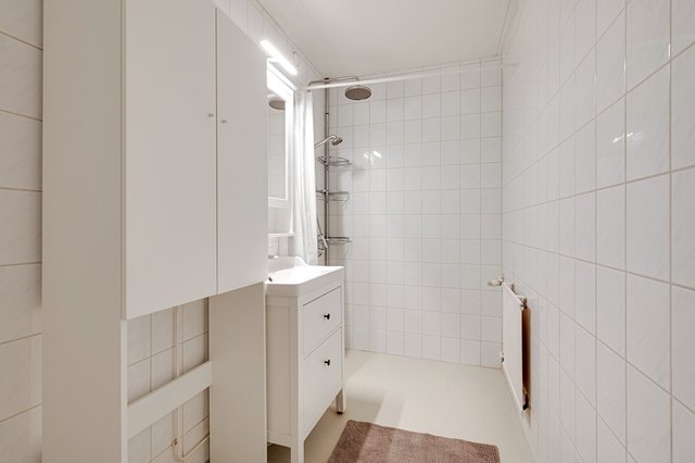 - Suihku, pesukoneliitäntä, peilikaappi, pesuallas, ja allaskaappi