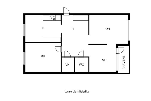 - Ei tarkistusmitattu. Pinta-alat saattavat tämän ikäisissä kohteissa (yhtiö rekisteröity ennen 01.01.1992) poiketa olennaisestikin asuinrakennusten nykyisten mittaustapojen ja standardien (SFS 5139) mukaan laskettavasta asuintilojen pinta-alasta. Pinta-ala voi siis olla edellä mainittua pienempi tai suurempi.