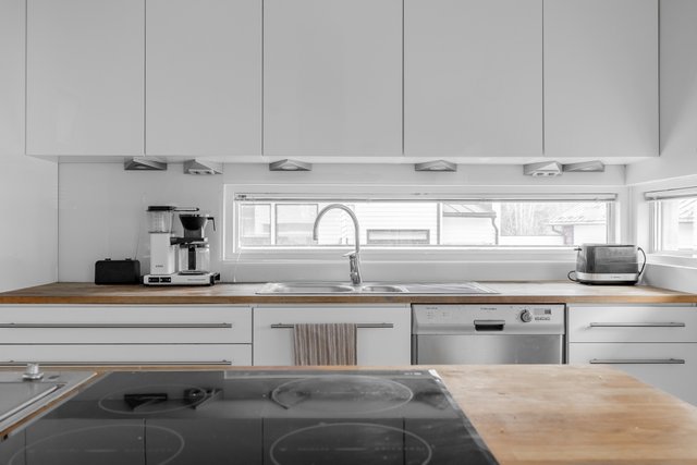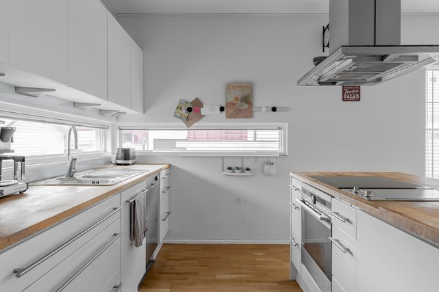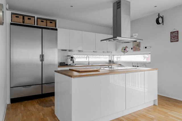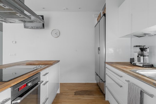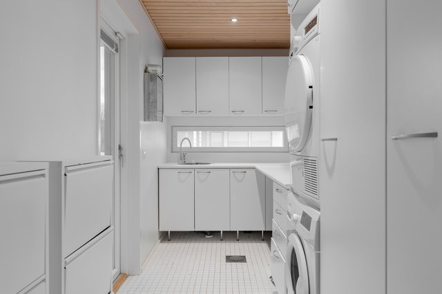 - Lattiakaivo, pöytätaso, pyykkikaapit, tila pesutornille, ja lattialämmitys