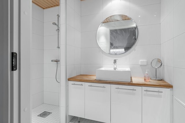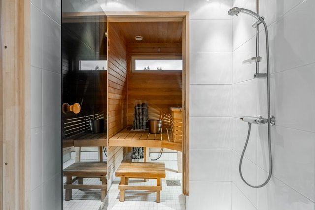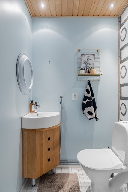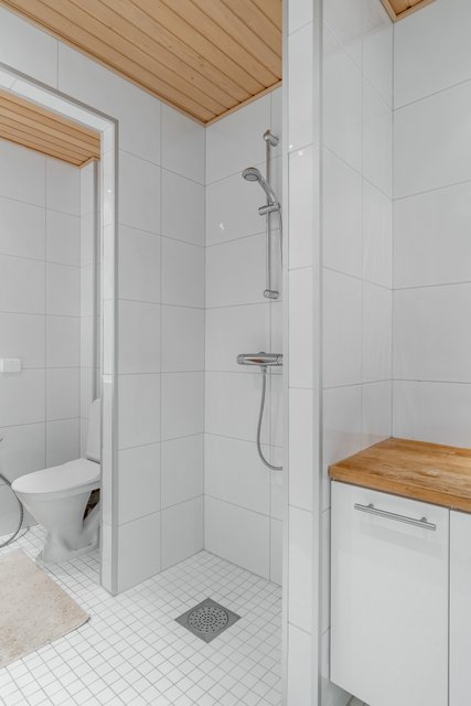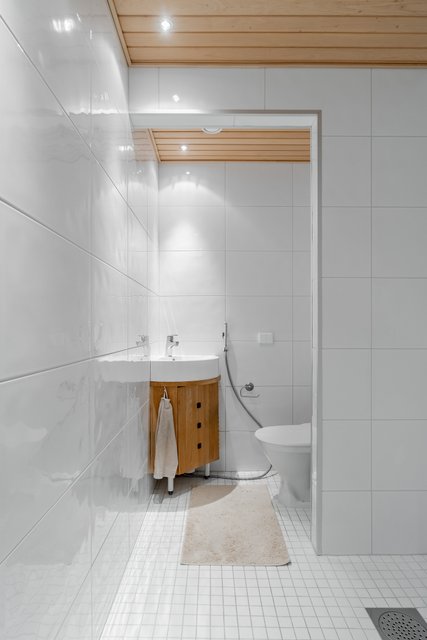 - WC-istuin, suihku, pesuallas, allaskaappi, bidee-suihku, ja lattialämmitys