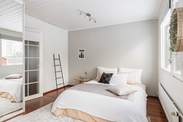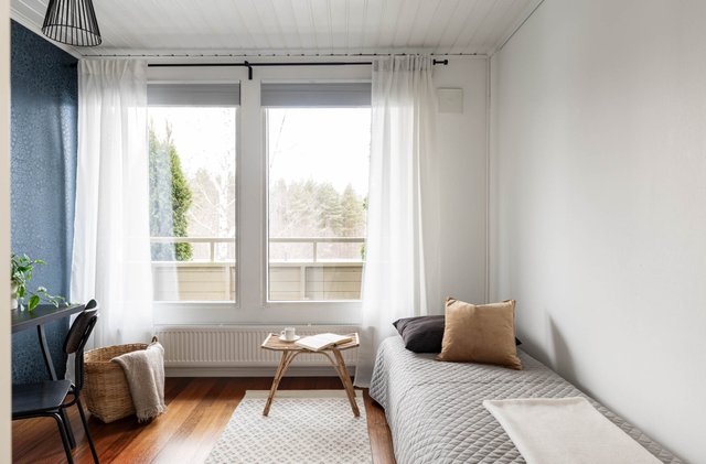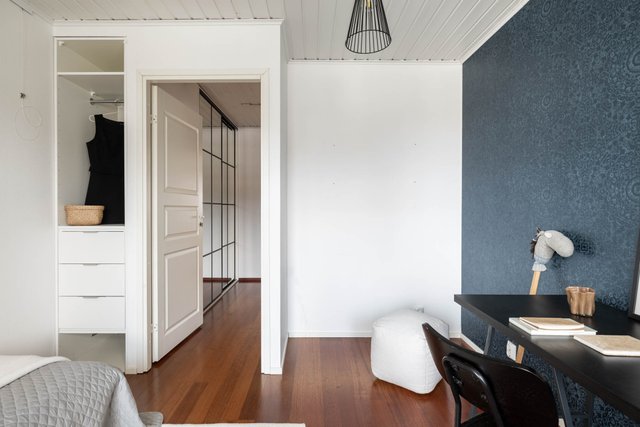 - Lattia parkettia, seinät maalattu/tapetoitu.