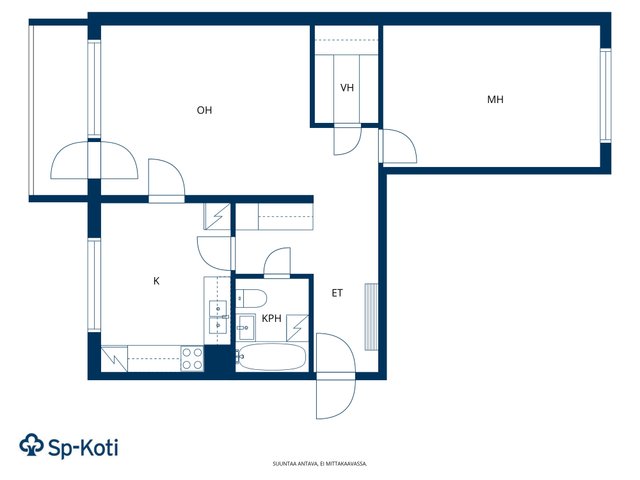 - Ei tarkistusmitattu. Pinta-alat saattavat tämän ikäisissä kohteissa (yhtiö rekisteröity ennen 01.01.1992) poiketa olennaisestikin asuinrakennusten nykyisten mittaustapojen ja standardien (SFS 5139) mukaan laskettavasta asuintilojen pinta-alasta. Pinta-ala voi siis olla edellä mainittua pienempi tai suurempi.