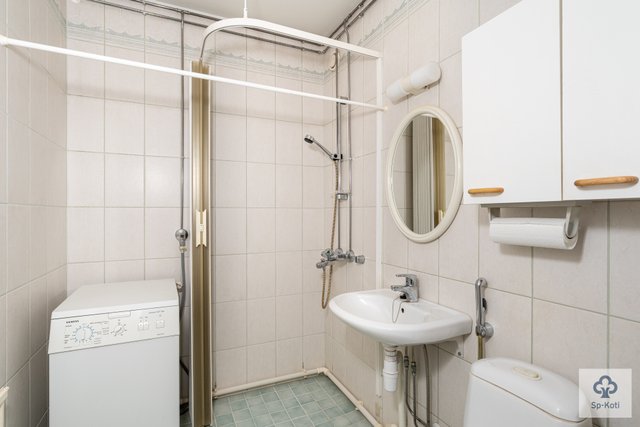 - WC-istuin, suihku, pesukoneliitäntä, peili, pesuallas, ja bidee-suihku