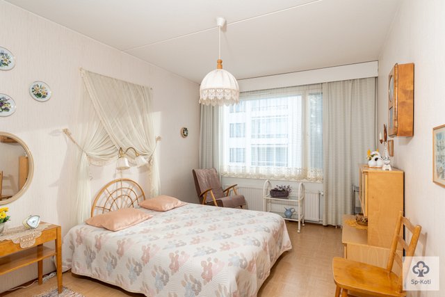 Sekä olohuone, että makuuhuone ovat tilavat ja asunnosta löytyy myös hyvän kokoinen vaatehuone.