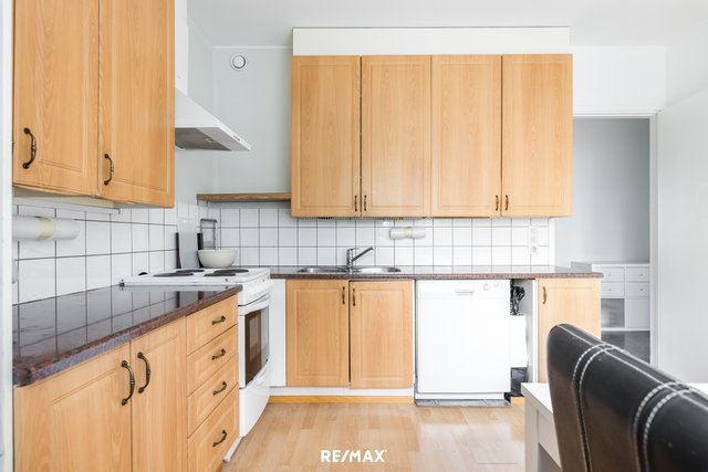Asunnon parveke on lasitettu, mikä tarjoaa lisätilaa ja mukavuutta ympäri vuoden. Keittiö on varustettu nykyaikaisilla kodinkoneilla, kuten jääkaappi-pakastin, uuni, liesi ja astianpesukone. Kylpyhuoneessa on suihku ja wc.