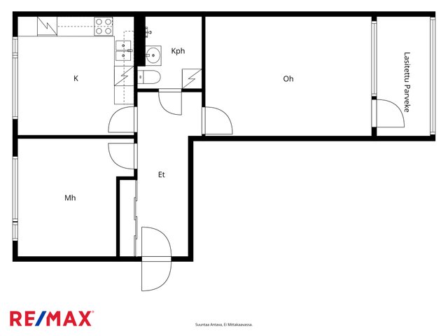 - Ei tarkistusmitattu. Pinta-alat saattavat tämän ikäisissä kohteissa (yhtiö rekisteröity ennen 01.01.1992) poiketa olennaisestikin asuinrakennusten nykyisten mittaustapojen ja standardien (SFS 5139) mukaan laskettavasta asuintilojen pinta-alasta. Pinta-ala voi siis olla edellä mainittua pienempi tai suurempi.