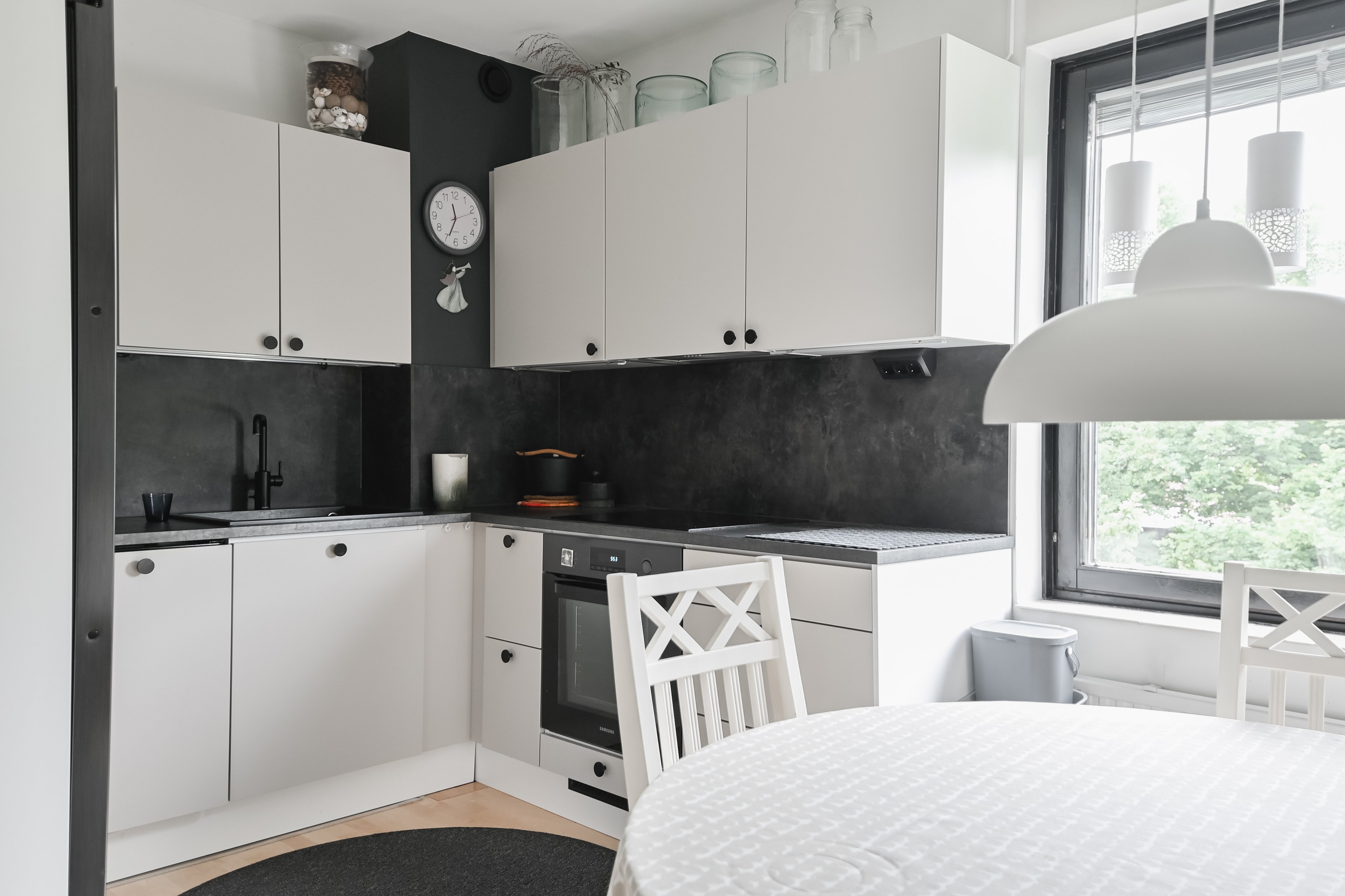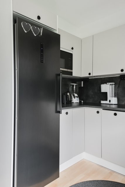 - Jääkaappi, erillinen pakastin, uuni, liesi, liesituuletin, astianpesukone, ja mikroaaltouuni
