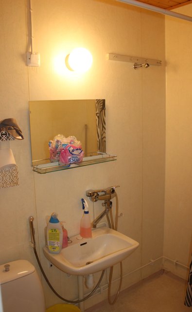 - WC-istuin, suihku, pesukoneliitäntä, pesuallas, ja peili
