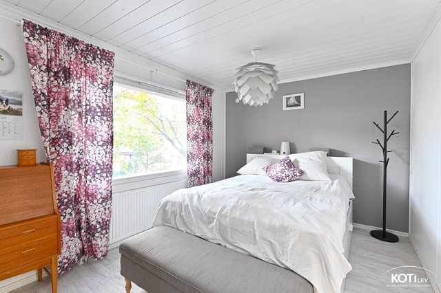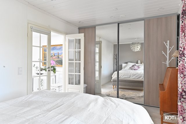 - Maalattu, yksi seinä tapetoitu yläkerran makuuhuoneessa
