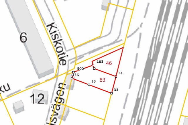 - Myytävä kiinteistö muodostuu kahdesta rekisteriyksiköstä (92-421-6-46, 220 m2 ja 92-421-6-83, 368 m2) Kaavan mukaisen tontin muodostaminen vaatii lisäksi lunastustoimituksen kiinteistöstä 92-421-12-595 (n. 145 m2)